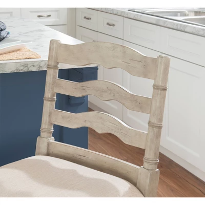 Unique and stylish, the Marino Counter Stool will add eye-catching design to your kitchen counter or high-top table. The stool features elegant turned front legs and a unique curved back design. The linen padded seat easily complements the distressed finish. Counter Height.