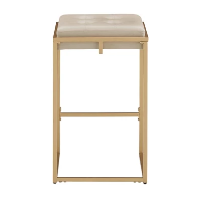 Splash some color in your kitchen or bar area with the Ervyn Gold Finish Velvet Button Tufted Counter Height Chairs (Set of 2) from Inspire Q. Offering one of the most luxurious seats in the house, these stools fit right in with any eclectic or glam theme. Glittery gold-finished metal bases provide stability as they support plush, foam-filled seats. The seats are upholstered in rich velvet and button-tufted for both elegance and comfort. This set of two bar stools comes in your choice of height and color for the velvet upholstery to best suit your design style.