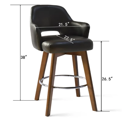 Our team designed this counter stool specifically for this market! Arms, waterproof leather, 360-degree swivel, solid wood construction, and a footrest that’s a breeze to clean!With the hidden 360-degree swivel mechanism, you can interact from any direction without any resistance.Along with a slightly PITCHED and CURVED back support for comfortable dining, the CUTOUT back help you adjust your WAIST and bottom to your most comfortble POSITION.The arms can make sitting so much more comfortable, PLUS, they’re great for keeping KIDS from wriggling around and slipping out of their seats.The FAUX leather is so well-crafted that it closely resembles GENUINE LEAHTER, with its rich texture, subtle sheen, and realistic GRAIN pattern. In fact, it’s hard to distinguish it from the real thing at first glance. It is very difficult to find this modern caramel color! Not old or vintage brown, that is kind of warm caramel but very young and chic.