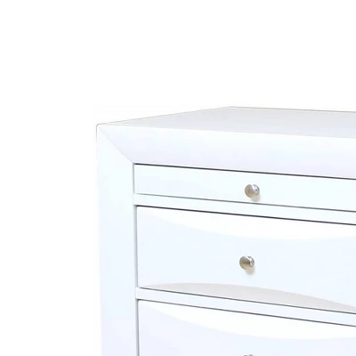 Give your room a stylish appeal with the Ireland Nightstand. The Ireland nightstand in white finish keep essentials close by with 2 storage drawers and 1 pull-out tray. Pull out tray offers you additional surface area. Drawer fronts are beveled and all drawers have English dovetail with center metal glides. Complemented by slightly flared square legs, this features contemporary feel. A modern black finish with shaped drawer fronts. This 3 Drawer Nightstand can be easily cleaned with a damp cloth.