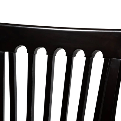 Timeless design is merged with modern comfort in the Minette dining chair. Made in Malaysia, this solid wood chair features a sleek espresso finish that complements the light polyester fabric upholstery. An optimal balance of comfort and style, the Minette features a plush foam-padded seat, as well as a striking cut-out design on its back for enhanced visual appeal. The Minette dining chair requires assembly and is compatible with a wide range of kitchen color palettes. Whether used for chic dinner parties or casual family dinners, the Minette chair is sure to elevate any dining experience. Dimensions: 38.2″ high x 21.7″ wide x 18.5″ deep; Seating dimensions: 18.5″ wide x 16.1″ deep x 18.5″ high (from Floor); Back: 19.7″ high; Legs: 16.9″ high;