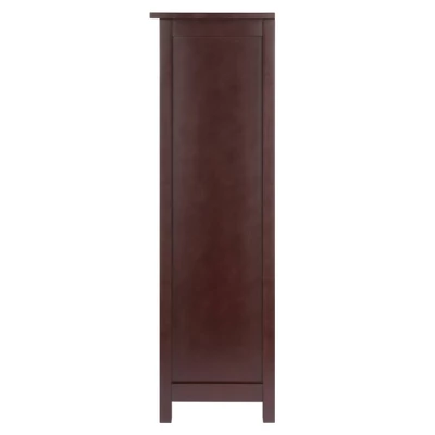 The Milan 6-Piece Storage Shelf offers terrific storage space with a touch of farmhouse style. Keep your living room, family room, or at-home office beautifully organized with the classic look of wood and 5 durable woven rope baskets. Ideal for keeping books, magazines, or odds and ends tucked away yet easily accessible. Or use it in the family room for organizing games, puzzles, and toys. The unit comes with 4 small and 1 large basket. They have cutout handles to make them easily portable, and when not in use, they fold for quick, compact storage. Use the Milan Shelf with any or all of the baskets, or as a standalone bookcase. The small baskets open to 10.24″W x 11.02″D x 9.06″”H, and the large basket opens to 22.83″W x 10.24″D x 9.06″H, wide enough to hold large coffee table books or items you’d like to lay flat. The shelf unit is made of solid and composite wood and finished in a warm Walnut. The baskets are finished in a complementary shade of Walnut. The shelf ships in 1 box that includes the hardware needed for assembly, and the baskets ship separately in 2 boxes.