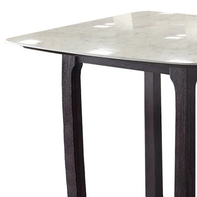 Simple, smart, and stylish, the Razo counter height set is the perfect solution for small spaces. The compact square table has a smooth marble top that stands out in lovely contrast with the weathered espresso finish of the wooden sled base. A subtle decorative trim along the table apron adds just the right amount of detail to this piece. Three matching stools with amply padded seats to maximize your space.