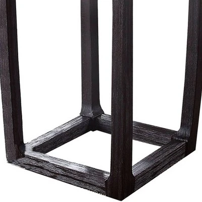 - The bases of these pieces are crafted from wood with square tapered legs and an espresso finish
