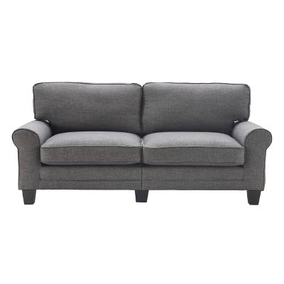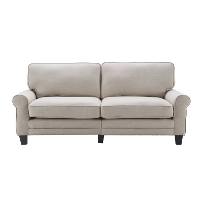Enjoy functional style and plush, comfortable seating with the Serta Copenhagen 73″ Sofa. A great solution for smaller spaces, its compact size and easy tool-free assembly makes it an affordable and stylish seating solution for your apartment, condo or office. Soft rounded arms, pillowy back cushions and espresso finished footers bring traditional style to your living room, den or game room. Quality hardwood materials deliver strength and stability you can count on, while individually wrapped coils surrounded by high-density foam and poly-fibers provide comfortable seating you can sit back into. Designed to match pieces in the Copenhagen Collection, this Serta sofa can be combined with another sofa, loveseat and accent chair for a completely coordinated look.