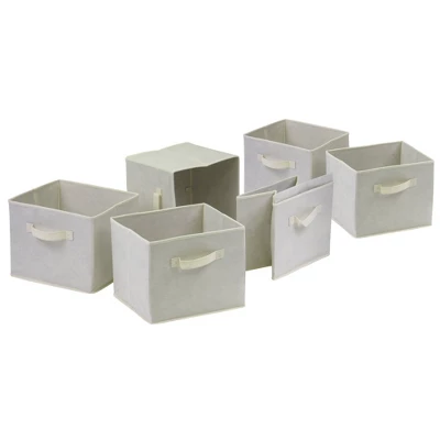 - Comes with 6 Beige Foldable Fabric Baskets open for storage with 10.97″W x 10.06″D x 9″H