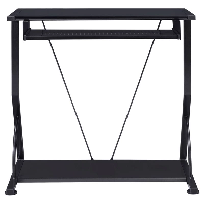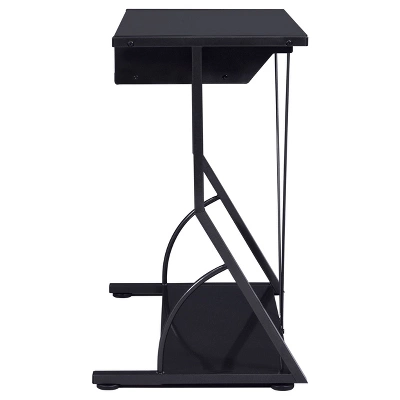 - Features a convenient keyboard tray and 1 storage shelf for more desktop space