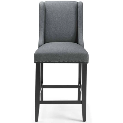 Explore the vast riches of a treasured heritage with the Baron Upholstered Fabric Counter Stool. Baron is an exceptionally made modern counter stool with an elegant back, polished nailhead trim, and footstool support. This kitchen counter stool features dense foam padding with a sinuous spring support system for added comfort and support. Boasting a solid wood frame with tapered legs and non-marking foot caps, Baron is a stylish upholstered fabric counter stool perfect for the apartment or home. Counter Stool Weight Capacity: 500 lbs.