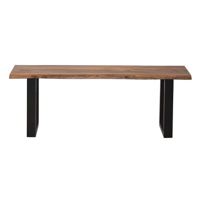 The live edges and rich graining of the exotic Sheesham wood finished in our Brownstone Nut Brown make this Counter Height Dining Bench a feast for the eyes as well as a beautiful addition to the matching table. Perched atop black U shaped powder coated legs for strength and durability, this bench will be a welcome addition for any room.