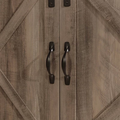 Saracina Home’s Clarabelle Double Sliding X Barn Door 70” TV Stand is the homey farmhouse pick-me-up you’ve been looking for. Two sliding X-front barn doors give you the freedom to choose what’s on display and what stays out of sight. Place media components, books, and decorations on any of the three adjustable shelves, and keep cables organized with the convenient cord management ports. Strong powder-coated steel hardware and accents add just the right amount of rustic finesse to the piece. The low profile makes for a down-to-earth silhouette that looks just right as a living room storage console or even a dining room sideboard.