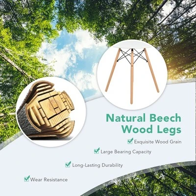 Our 5-piece dining table set comes with a round dining table and 4 chairs, maximizing the daily dining enjoyment with your friends or family. The elegant and stylish table set is suitable for 4 persons to enjoy dining, coffee, afternoon tea, or reading books, which can be a perfect addition to your dining room, kitchen, office, or coffee shop decoration. Besides, all of the supporting legs are crafted with natural beech wood, ensuring great durability, and each leg is equipped with a rubber footpad on the bottom to protect your floor from scratches. Moreover, the table and chairs are supported by reinforced powder-coated steel frames, providing strong support and guaranteeing a strong loading capacity. And the large table that can load up to 199 lbs provides sufficient space to accommodate your items. Thanks to the curved seats, you can sit on the chair for a long time comfortably. Other than that, the detailed assembly manual and complete accessories are all included for easy setup. And the package is divided into 2 boxes–one is the table, another one is 4 chairs.