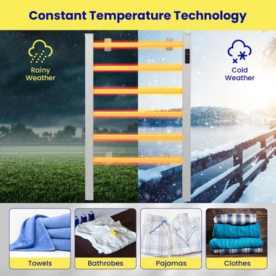 - Stay Warm & Dry in All Seasons: Designed with 6 bars, this heated towel rack can provide large contact area. And it is ideal for towels, bathrobes, pajamas, clothes and more. So, this heated towel rack offers you and your family a cozy and healthy environment in rainy weather or cold weather.
