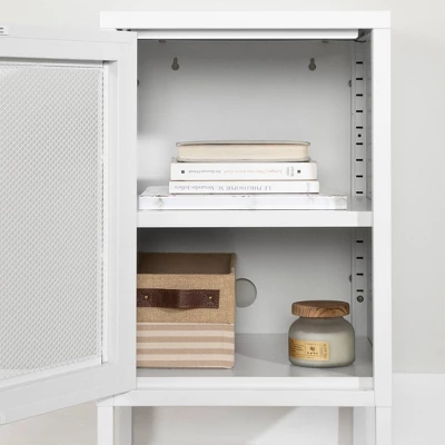 - 1-YEAR LIMITED WARRANTY: South Shore is proud to stand behind this metal mesh 1-door end table with an exclusive 1-year limited warranty. Shop with confidence knowing your purchase is always covered.