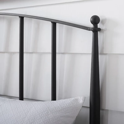 Give your bedroom a classic look and feel with our Whitney bedset. Featuring a slight arch on the headboard and footboard along with tapered legs, the Whitney puts a new spin on the classic metal bedset by creating clean, modern lines on an otherwise traditional silhouette. The textured charcoal powder coating on the steel frame and oval finials help to complete the look, making it a stylish addition to any bedroom.