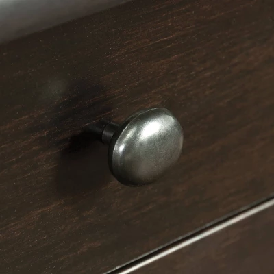 Revamp your office space with the sleek design of this L-shaped home office desk from the Edge Water® collection. This L-shaped desk with drawers offers a spacious top surface that provides you with room for everything you need like your planner, computer, cup of pens, and photos of your family too. This transitional desk features a small storage drawer that opens and closes on smooth metal runners and safety stops for easy access storage of supplies like a stapler, pad of paper, or sticky notes. The lower file drawer with full extension slides can hold letter or European sized hanging files for increased organization. A bottom open shelf of this L-shaped desk with storage provides you with additional space for books, binders, or home décor. The cord management system includes desktop grommets, so cord clutter is a thing of the past. Assembly is a breeze with a T-lock drawer system. Finished on all sides for versatile placement anywhere in your home, this home office desk will look polished from every angle. Finished in Estate Black®, this beautiful L-shaped computer desk will have your home office looking and functioning better than ever.