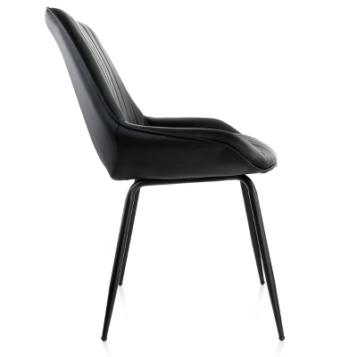 Add a touch of elegance to your living room or work space with the Elama 2 Piece Tufted Chair in Black with Metal Legs. This set of chairs is crafted with a velvet square stitch designed upper and sturdy metal legs. These chairs are perfect for relaxing on in front of the tv or getting some work done in style in your home office. Designed with a slight lean for back comfort.