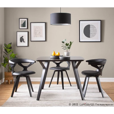 The unique cut-out design that forms the back of the LumiSource Gardenia adds visual flair to the design of this great chair, while the swivel seat provides maximum comfort and convenience. The tree-like look of the curved back is accented with padded upholstery, providing superior comfort while bent wood legs give ample stability. Available in various finishes and upholstery colors, the Gardenia Chair will definitely make a statement.