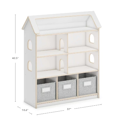 Guidecraft’s EdQ collection satisfies storage and organizational needs in classrooms, homeschool environments and kids’ play areas. The versatile, attractive furniture pieces in this complete collection provide opportunities for various easy configurations in any spaces where children learn and play. The EdQ Dollhouse Bookcase is the perfect playful and practical storage unit. Window and door cutouts, a sloped semi-open roof and accessible shelves with a finished back provide the perfect setting for dramatic play using dolls and stuffed animals. Wide shelves and compartments on the lowest level provide storage for learning materials, books, toys and special treasures.