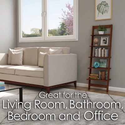 - FAST SETUP – Assemble this five-tier wall shelf quickly and conveniently by using the included hardware and tools. This ladder shelf simply leans against the wall when fully put together, letting you add personal touches immediately.