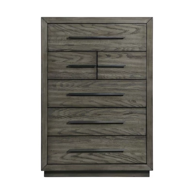 The Picket House Furnishings Hollis 6-Drawer Chest is going to look timeless in your bedroom! Designed with seven spacious drawers, plenty of room for storing away your belongings. Expertly constructed of solid pine and showcasing wood grain detailing throughout. The silver drawer handles are what give this nightstand a refined look. The top drawer is lined with black felt to keep your trinkets safe. The bottom drawer is layered in dust-proofing. The Picket House Furnishings Hollis 6-Drawer Chest will bring an authentic and refined look to your bedroom.