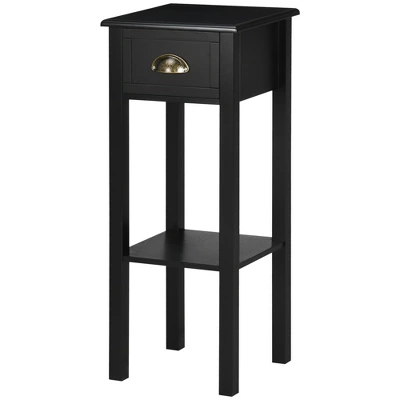 Add a beautiful accent piece to your home while giving yourself extra storage with this narrow end table from HOMCOM. Place the end table in your living room or bedroom to hold items you use daily or as a decorative display shelf. The drawer allows you to store small objects without getting lost. It’s compact enough to fit between those tiny spaces between your couch or bed and the wall. Add elegance and some extra storage with HOMCOM.