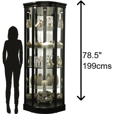 - Quality Craftsmanship: This curio cabinet is made in the USA from select hardwoods and veneers. It has a Black Satin finish to complement any interior color palette, and its frameless glass door imparts a contemporary touch to your space while allowing a clear view of the cabinet’s contents.