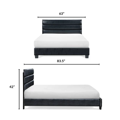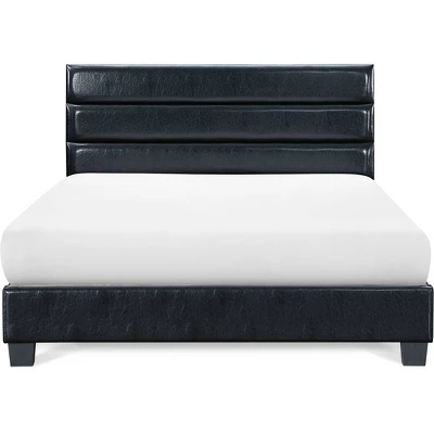 If you prefer modern or contemporary bedroom decor, you will love the look and feel of this comfortable upholstered bed frame. After placing this bed in your bedroom, your eyes will immediately be drawn to the modern channel tufted headboard, a unique feature that takes this design to the next level. This bed is ideal for those who prefer a low profile bedroom set with the included slat kit, so a box spring is not required for mattress support. Available in your choice of soft linen-like fabric upholstery or glossy bonded leather, this bed will be the perfect anchor to your modern room design.