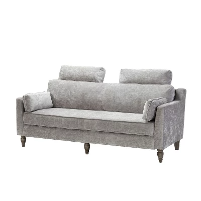 The exceptional comfort of our sofa lets you create an intimate conversation area or an expansive seating arrangement in your home. Incorporating the simple contemporary curves effortlessly with traditional classic details, this statement-making piece with supportive headrests, removable back cushion, two toss pillows, and comfortable velvet upholstery brings unforgettable enjoyment. The tasteful turned legs hold the solid and manufactured wood frame with padded foam and polyester fiber in a high grade, showing a perfect combination of sturdy structure and extreme comfort. Plus, it comes awash with optional solid hues, allowing it to blend effortlessly with your color scheme. This stunning sofa will definitely bring your living space the sophistication that you are looking for.