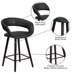 Emma And Oliver 24″H Cappuccino Wood Rounded Open Back Counter Height Stool