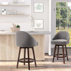 Costway Set Of 4 Wooden Swivel Bar Stools Upholstered Counter Height Dining Chairs