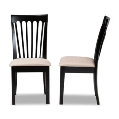 2pc Minette Fabric Upholstered Espresso Wood Dining Chair Set Sand/Dark Brown – Baxton Studio