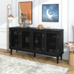 60″ Generous Storage Sideboard With Faux Rattan Door – ModernLuxe