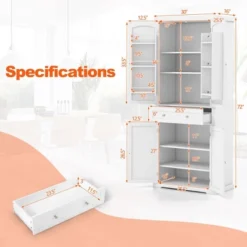 Costway 72” Freestanding Kitchen Pantry Cabinet 4 Doors Storage Cupboard Shelves Drawer