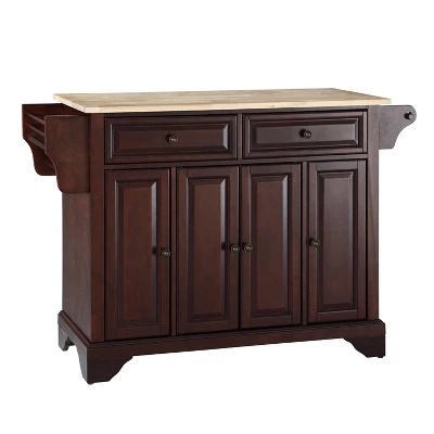 The Lafayette Full-Size Kitchen Island adds enduring style and storage to your kitchen. Featuring three cabinets, each with an adjustable shelf, this island can easily store pots, pans, and small appliances. Two large drawers keep small items like utensils and dishtowels close at hand, while the built-in spice rack and paper towel holder keep your counter space free of clutter. With a beautiful wood countertop and sculpted feet, the Lafayette Full-Size Kitchen Island is a welcome addition to your kitchen space. Overall Product Dimensions: 51.5”W X 18”D X 36”H