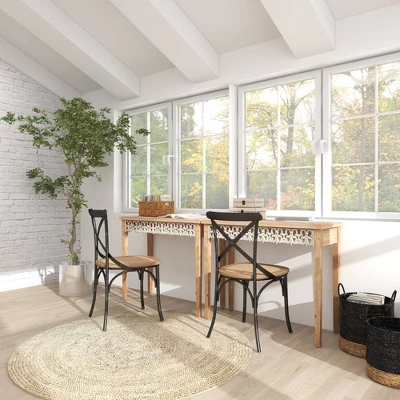 Makes a delightful home accent in entryway, living room, or home office. Bring a finishing touch to your home with an inviting appeal with this console table. A sturdy and long lasting construction that for a years of enjoyment. Designed with protective stoppers at the base that prevent scratching furniture and table tops, as well as sliding around. Suitable for indoor use only. Item has maximum weight limit of 100 lbs. Farmhouse theme.