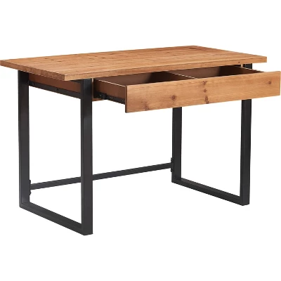 Design your small sleek home office to perfection with the Leighton Desk by Serta. This desk features a modern farmhouse styling that is appropriate placement in casual, contemporary, modern and traditional room designs. Featuring a combination of natural solid wood and dark metal, this desk has neutral coloring that makes designing your room easy and fun. The table top and storage drawer are large enough for your laptop, documents and office supply items and the ample legroom is a comfortable fit with the Serta Leighton Home Office Chair. The style of this desk also allows it to be placed in your living room or den for use as a buffet table if you choose. This desk has a small footprint that makes it the perfect, versatile storage solution for small spaces. Due to natural materials, color variation and unique wood details are to be expected and celebrated.
