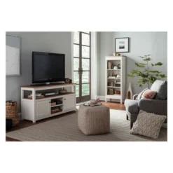 Savannah Cabinet Natural Top Wood TV Stand For TVs Up To 64″ Ivory – Bolton Furniture