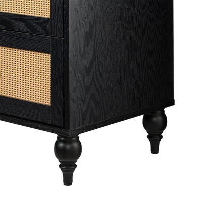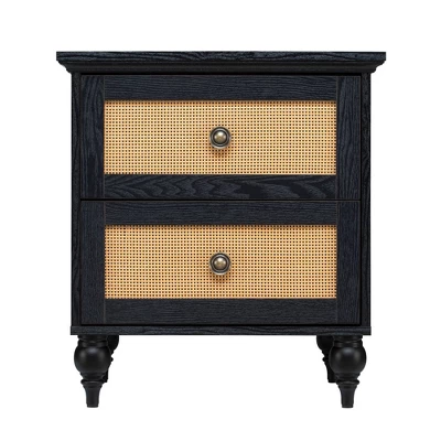 Our 2 drawer nightstand brings forward a “mixed material” aesthetic by combining our “rattan” drawer panels. This technique brings an attractive visual shift to the surfaces of the cabinet. The juxtaposition of the “rattan” texture against the colored finish enhances the appearance of this terrific transitional 2 drawer nightstand. This nightstand has ample storage within the two-drawer system. The beautiful lathe-turned solid wood feet and molded top edge add to the transitional nature of this collection. The 2 drawer nightstand is sure to enhance any home’s bedroom environment.