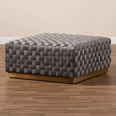 Add luxurious comfort to any space with the Noah ottoman. Made in China, the Noah is upholstered in a sleek velvet fabric that is intricately woven to add texture and accentuate the stunning gray tones. Plush foam padding provides ample comfort, while the gold-tone metal base lends a glamorous look. Fully assembled, this versatile piece can be used as a coffee table, footstool, or as extra seating for guests. Spruce up any living room with lavish appeal and utility of the Noah ottoman.