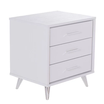 Bedroom storage gets a sleek upgrade with the Aiden Lane Orensby Bedside Table. Retro-inspired silhouette with three storage drawers stylishly tucks away accessories while snuggling bedside. The spacious tabletop displays your morning java and a statement lamp. Upgrade in contemporary style with this three-drawer, storage nightstand chest. Wake up your style with this nightstand putting some pep into your daily routine, from the bedroom to the living space.