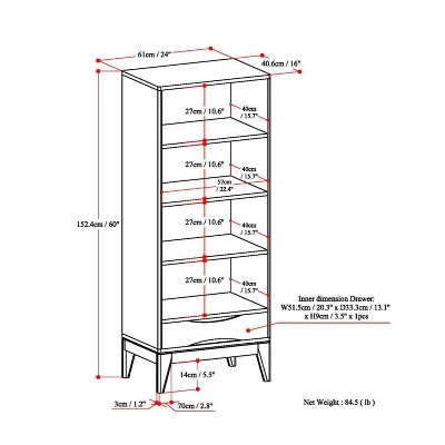 | Dimensions (Overall) | 60 (H) x 24.02 Inches (W) x 15.94 Inches (D) |