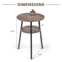 Costway 2 PCS 2-Tier Sofa Side End Table Round Nightstand With Sturdy Metal Frame Brown/Oak
