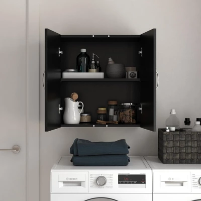 Are you one of the lucky ones? The ones who have in-unit laundry. The ones who have extra wall space in their bathroom andor kitchen. If you are, take advantage of that unused space and turn it into storage. We know how valuable wall real estate is in a 300 square foot apartment! You can use the concealed storage of the RealRooms Basin Wall Cabinet for laundry essentials and cleaning supplies. It is also the perfect solution for those of us stress cleaners who buy supplies in bulk! The interior of each of the cabinets features one adjustable and one fixed shelf. The EZ Hang system makes the installation quick and easy – no assistance from dad or grandpa necessary. Simply attach and level the support bar on the wall and hook the wall cabinet on for a sturdy hang on the first try. Use this piece as a stand-alone item, or combine it with additional RealRooms Basin storage items to create the perfect storage solution for your home (each sold separately). Available in multiple size and color options.