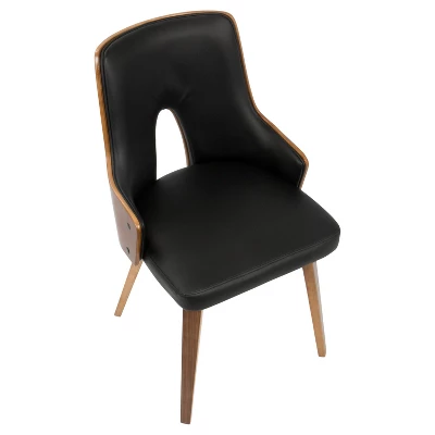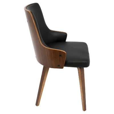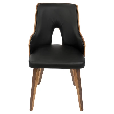 Enjoy the Mid-Century style and comfort of the Stella Chair. A padded backrest and seat are upholstered in faux leather and accented by a walnut-finished bent wood back and legs. The comfy padded seat if perfect for long conversations, or a quick morning breakfast. Available in various colors, choose the one that suits your space best! Sold as a set of 2.