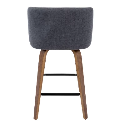 Comfort, modern simplicity, and classic lines define the appealing look of the Toriano Counter Stool by LumiSource. A padded upholstered seat sits on a fixed-height Mid-Century inspired tapered leg base with a square footrest. The comfy padded seat if perfect for long conversations, or a quick morning breakfast. Available in blue or gray, choose the color that suits your space best!