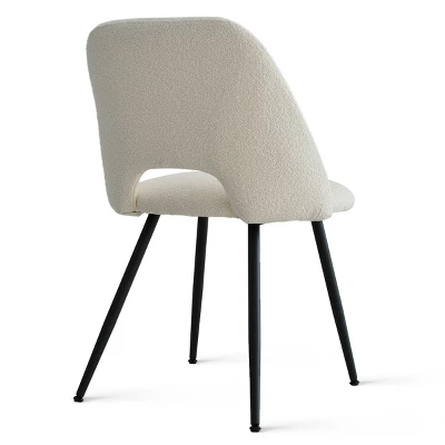 Serve up modern style with this set of 4 dining chairs from The Pop Maison. Each chair features an engineered wood frame with foam seat padding and luxurious faux shearling upholstery. The seatback is elegantly curved, and the black steel legs are flared, offering sturdy support for up to 250 lbs.These side chairs also come with plastic glides on their feet to protect your floors from scratches and scuffs. Whether you’re going for a contemporary or mid-century modern look, this stylish set is the perfect addition to any dining space.The faux shearling upholstery adds a cozy and inviting touch, while the sleek design of the chairs allows them to fit seamlessly into any decor style. Perfect for entertaining guests or enjoying family meals, this set of dining chairs is sure to elevate the style and comfort of your dining space.With a set of 4 chairs, this collection is perfect for larger dining spaces or as additional seating in any home. The chairs’ engineered wood frame and foam seat padding provide both durability and comfort for extended use.