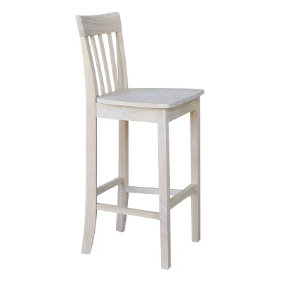 Offer a warm, inviting look to your kitchen, dining room, bar, or lounge with this solid wood barstool from International Concepts. This beautifully crafted stool is part of a high-quality collection of wood furniture that boosts a traditional and elegant look that will easily complement any décor. Parawood – a hardwood known for its durable, strong, and environmentally friendly nature – is used to craft this attractive and durable stool. Pair with one of the wide variety of solid wood tables from International Concepts and create the perfect gathering place in your home! These unfinished pieces are ready to be stained or painted in your choice of color.