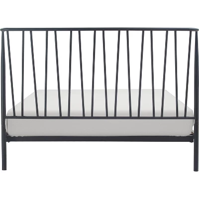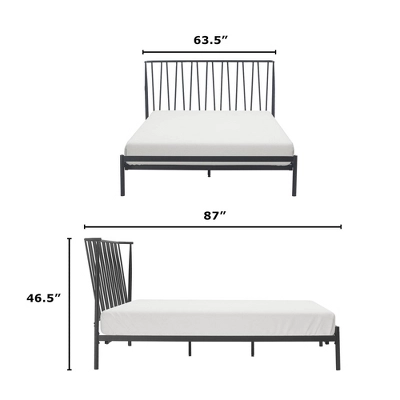 - Black metal creates a fresh, modern take on the traditional spindle bed