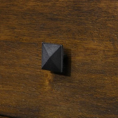 Solve your bedroom storage woes with this charming two drawer nightstand. This bedside table has a small profile that makes it a great option for placement in a guest bedroom or beside a living room sofa. But don’t let its small stature fool you, this accent table has two drawers that provide plenty of storage. The nightstand has a rustic farmhouse design and features a beautiful natural wood grain texture that complements many bedroom styles. Pyramid shaped, beveled drawer handles add to the beauty and quality of this piece.