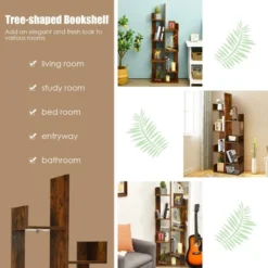 - [ Cute Tree Bookshelf with Drawer ]: Giantex small tree bookshelf features 5 shelves in total, enabling you to fully utilize them for CDs, 5-10 books, magazines and decorations. Besides, there is also a drawer at the bottom, designed for private storage.